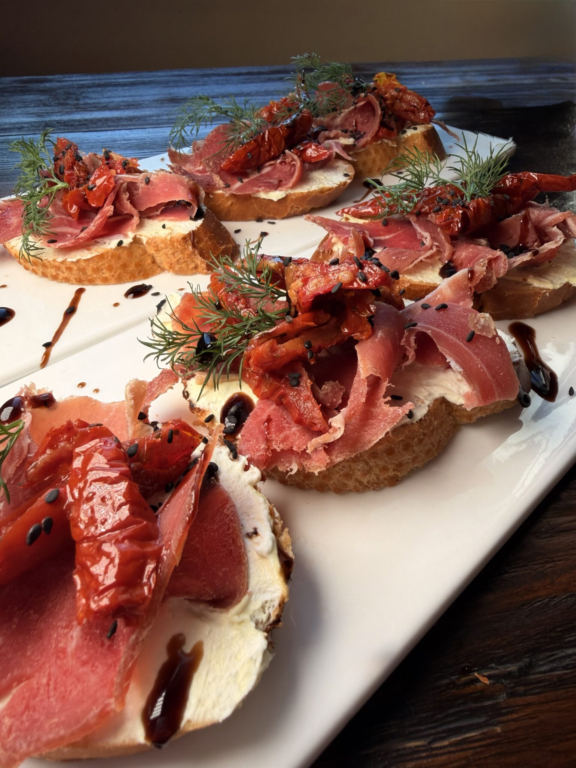 Главная страница » Кафе північ » Брускетта з прошуто та в´яленими томатами